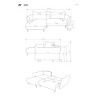Narożnik ADEL oferuje praktyczną funkcję spania z powierzchnią do spania o wymiarach 145 x 212 cm, zapewniając komfort zarówno w dzień, jak i w nocy.