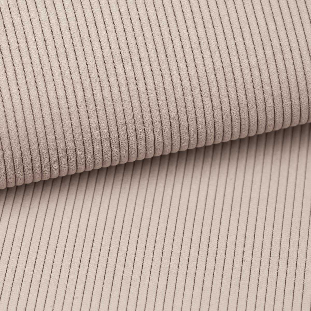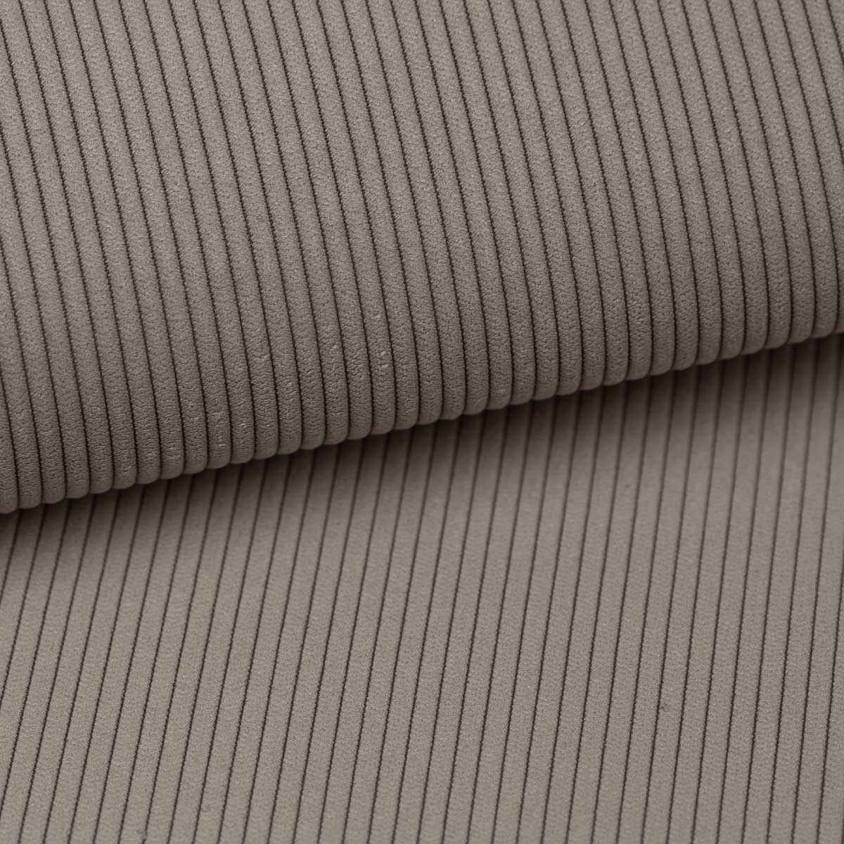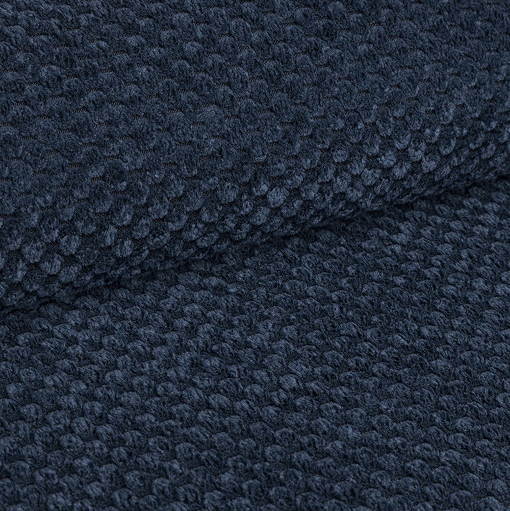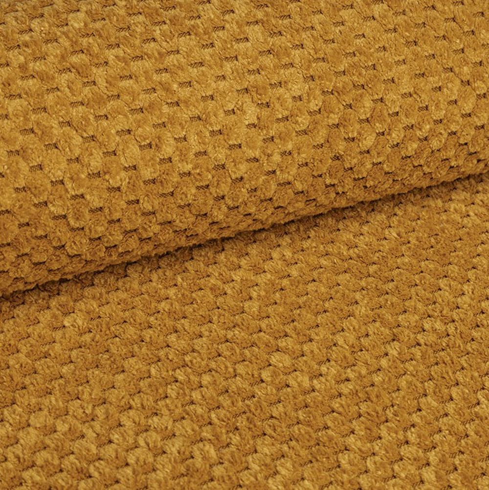 Curio to kolekcja tkanin dzianinowych o wyraźnym grubym splocie, który tworzy regularny wzór na powierzchni.