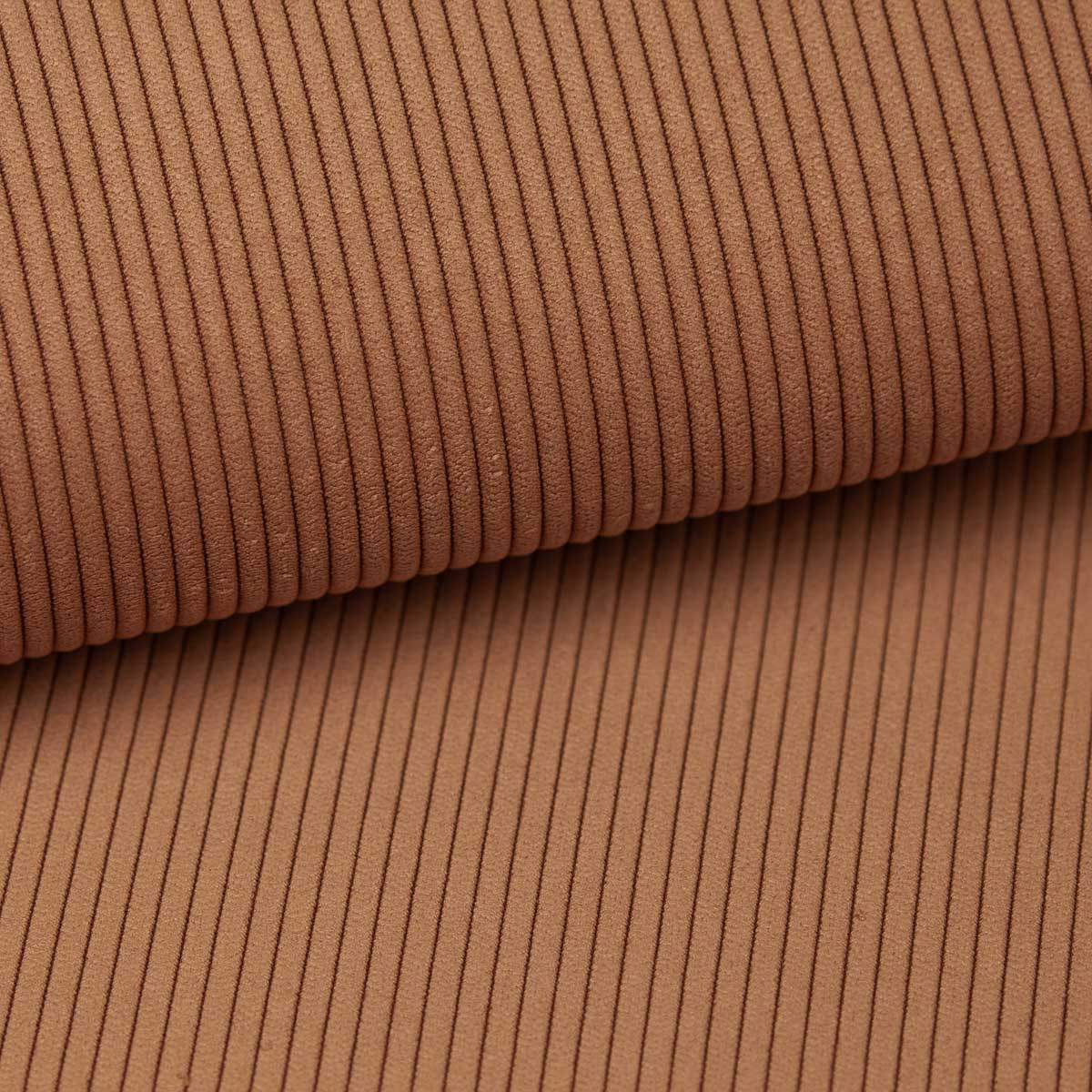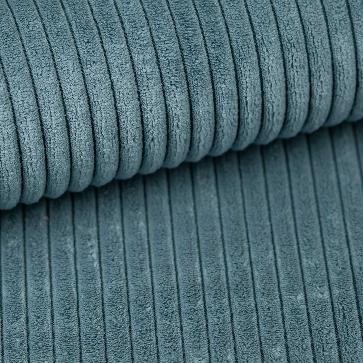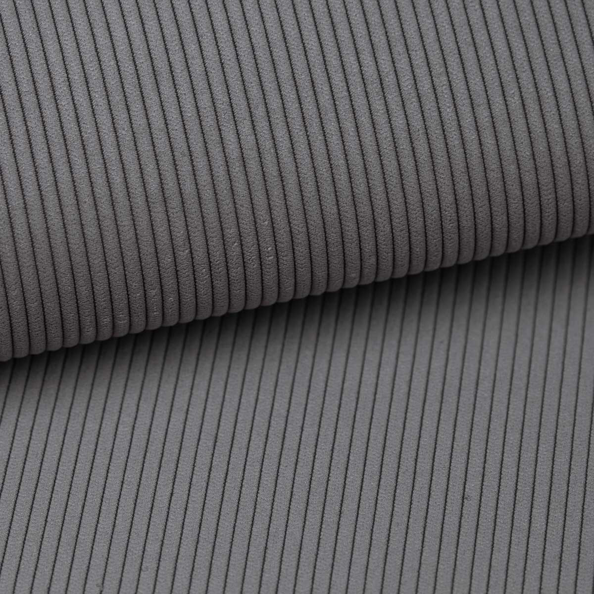 Curio to kolekcja tkanin dzianinowych o wyraźnym grubym splocie, który tworzy regularny wzór na powierzchni.