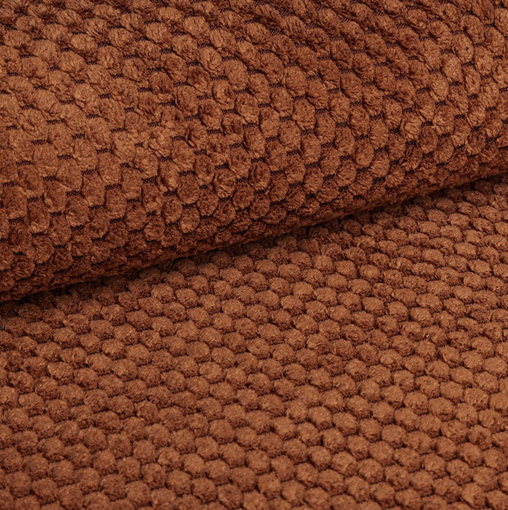 Przyjemna w dotyku faktura tkaniny w połączeniu z jej wytrzymałością, sprawia, że jest to bardzo dobra opcja obicia mebli codziennego użytku.